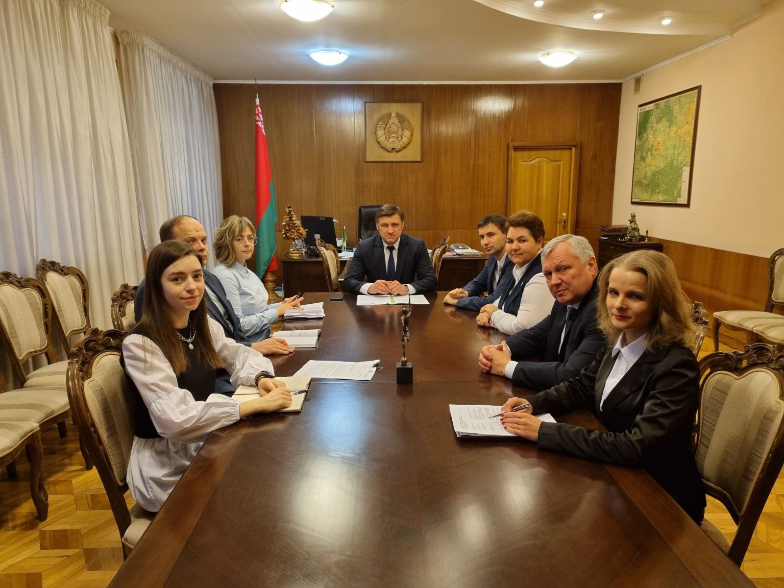 В Министерстве антимонопольного регулирования и торговли Республики Беларусь состоялась рабочая встреча министра антимонопольного регулирования и торговли Алексея Богданова с председателем Белорусского профсоюза работников торговли, потребительской кооперации и предпринимательства Оксаной Геращенко. Во встрече также принимали участие первый заместитель министра Иван Вежновец, заместитель председателя отраслевого профсоюза Валерий Мариничев, а также руководители структурных подразделений министерства. Во время встречи […]