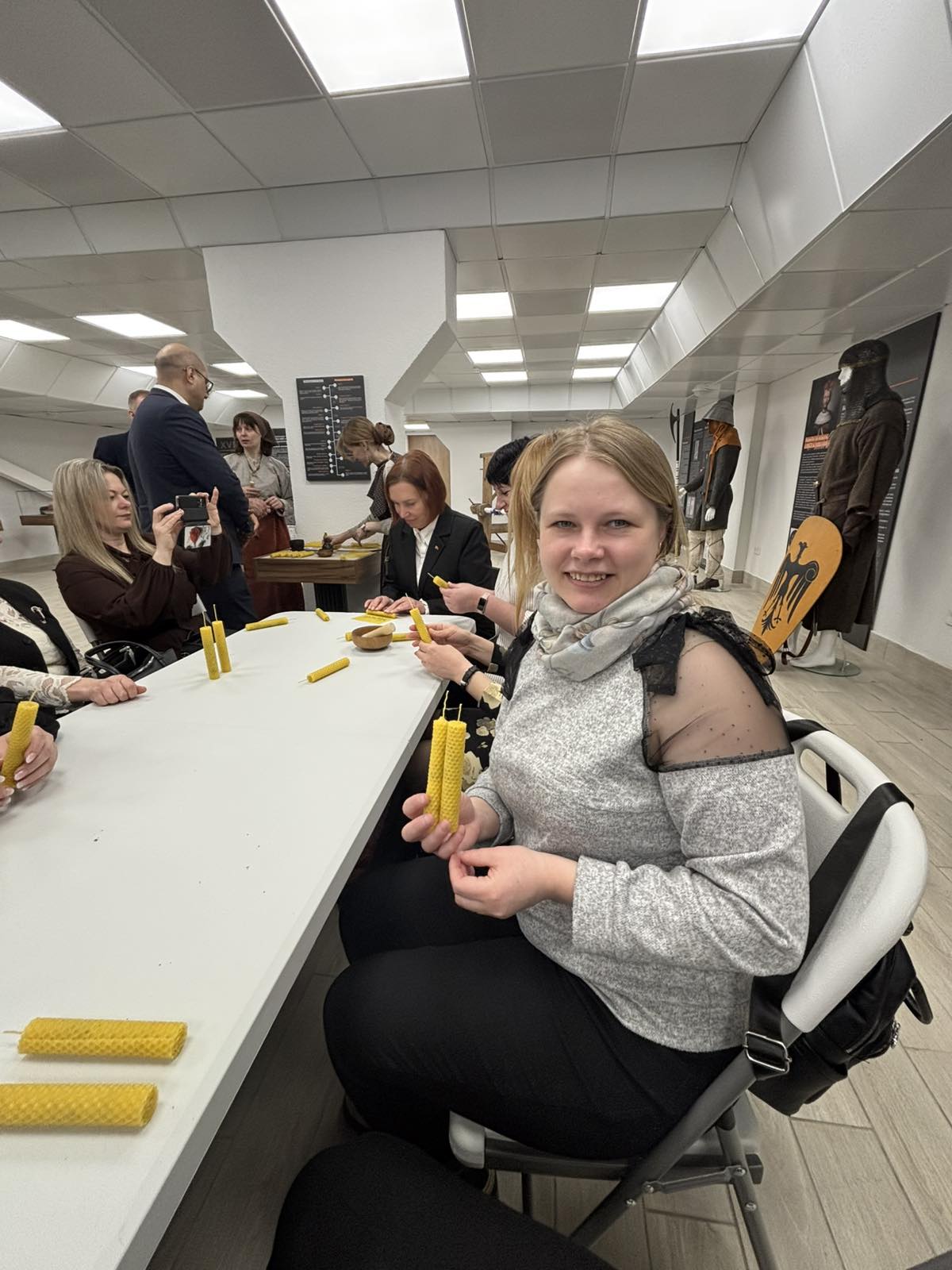 Затем для гостей мероприятия был организован творческий мастер-класс. Под руководством мастера женщины смогли освоить искусство создания восковых свечей . Приятным дополнением стали натуральные ароматы — лаванда и шиповник, которые наполнили помещение тонким и успокаивающим запахом. Такое рукоделие позволило каждой участнице не только проявить фантазию, но и создать маленький уютный подарок для себя или близких своими руками, вложив в него частичку душевного тепла.