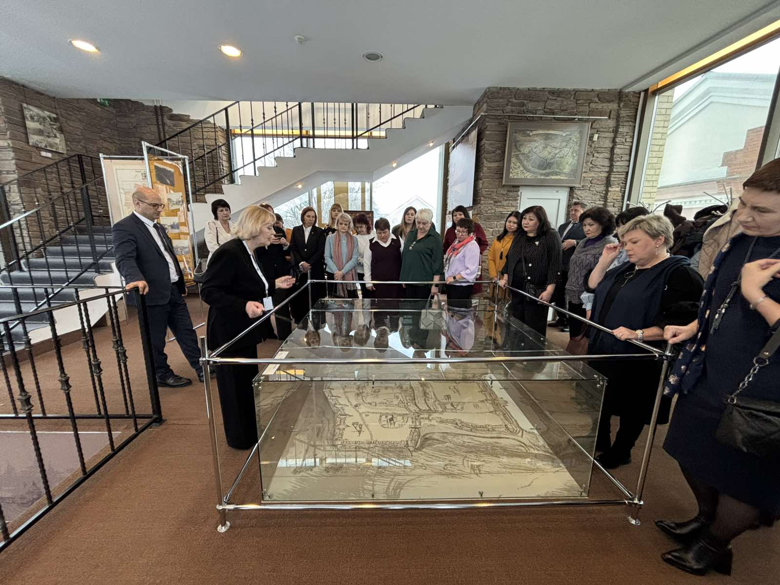 Продолжением праздничной программы стала экскурсия в выставочный зал «Духовской круглик» . Эта величественная пятиуровневая башня, расположенная рядом с Летним амфитеатром, является художественной реконструкцией оборонительного сооружения XIV века . Активистки поднялись на смотровую площадку, откуда открывается захватывающая панорама на исторический центр Витебска . Внутри башни они познакомились с экспозициями, посвященными археологическому наследию города и истории легендарного фестиваля «Славянский базар в Витебске» .