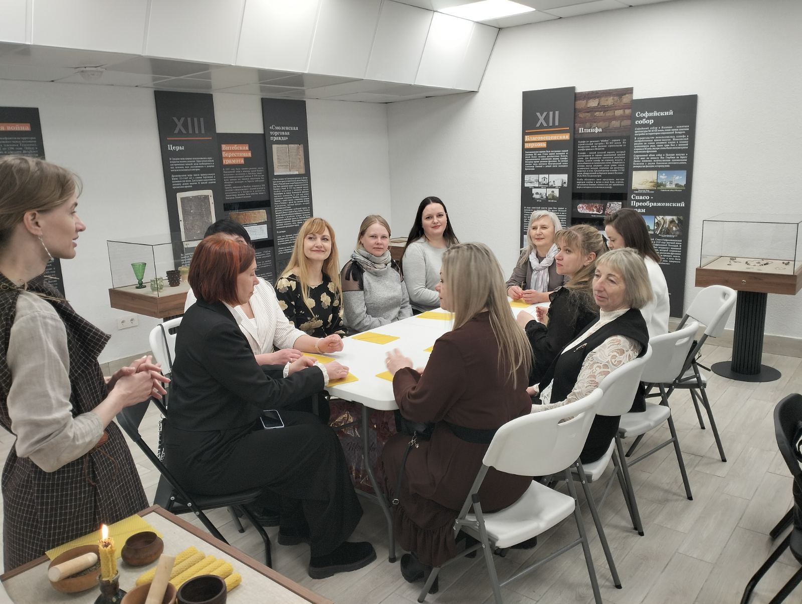 Первой точкой маршрута стало посещение народного клуба исторической реконструкции «Варгенторн» . Этот уникальный интерактивный центр живой истории расположен на территории Летнего амфитеатра — главной сцены «Славянского базара» . Участницы экскурсии смогли совершить увлекательное путешествие во времени и окунуться в эпоху раннего Средневековья. Реконструкторы клуба подробно рассказали о истории создания клуба и продемонстрировали аутентичные предметы, воссозданные по историческим образцам. Участницы мероприятия с большим интересом рассмотрели точные копии доспехов, исторические костюмы и предметы быта.